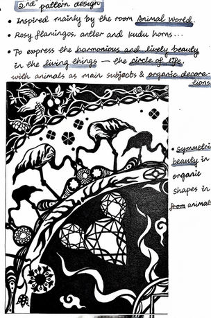 On the Surface is a lino-cut pattern-design project inspired by artifacts at the National Museum of Scotland. I visited three exhibition rooms—Making and Creating, Animal World, and Living Lands—to sketch objects directly from the displays. Based on observational sketches, I designed 4 patterns using the mirroring technique: each design begins as a single basic motif, then repeats symmetrically across the page to form a seamless pattern.