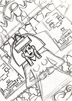 This design was hand-carved in lino and printed multiple times on a larger sheet, letting the relief process’s tactile lines and inky textures resonate with the original artifacts.